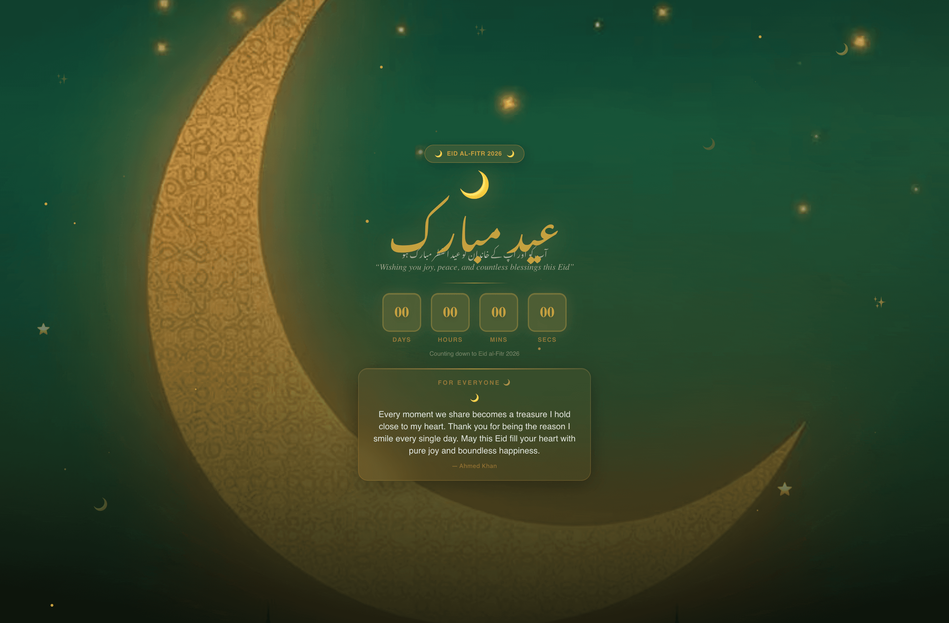 “Our Eid Mubarak page was shared by 200+ family members across 3 countries. The calligraphy style was absolutely beautiful.”
